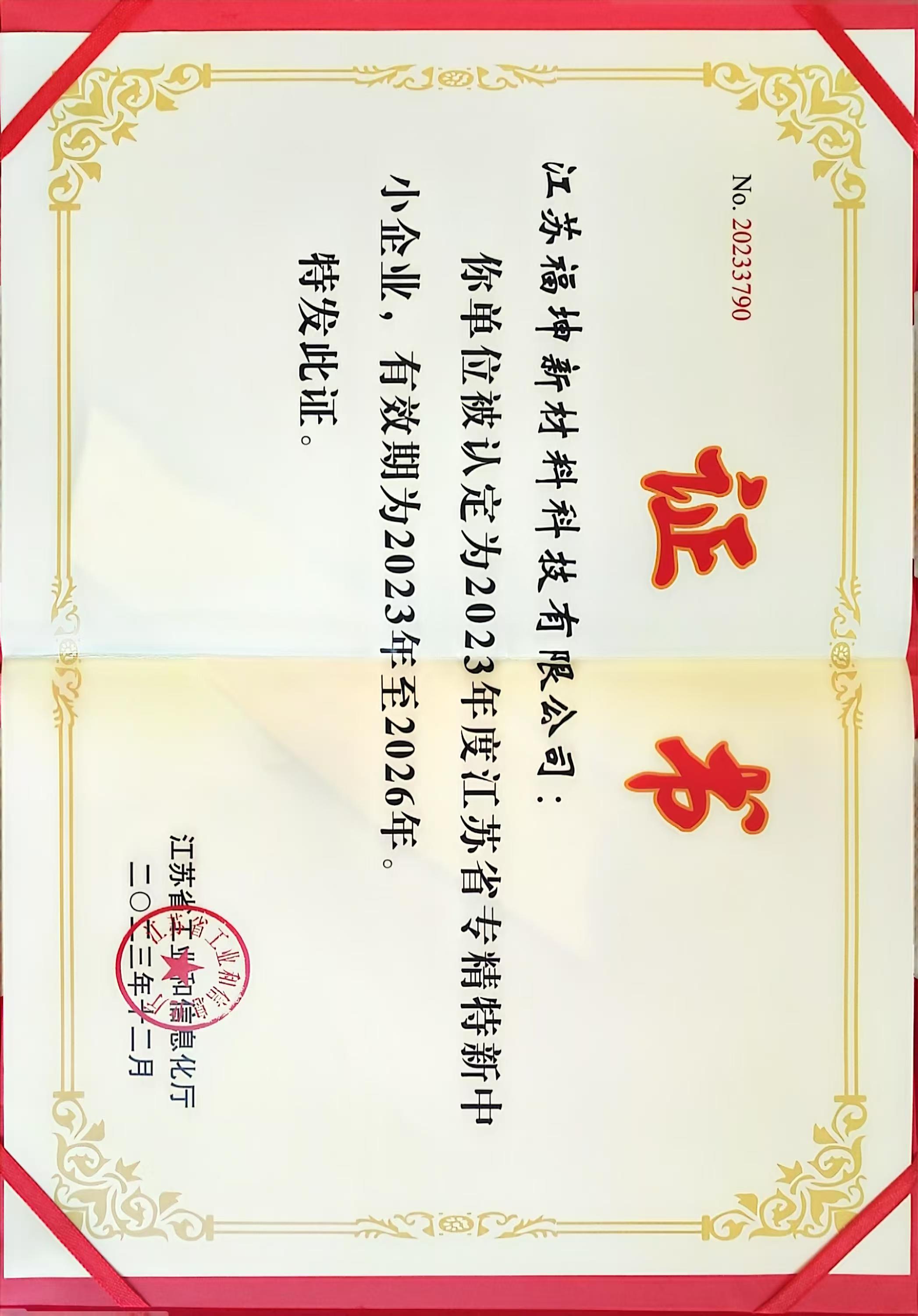 江蘇省專精特新中小企業(yè)